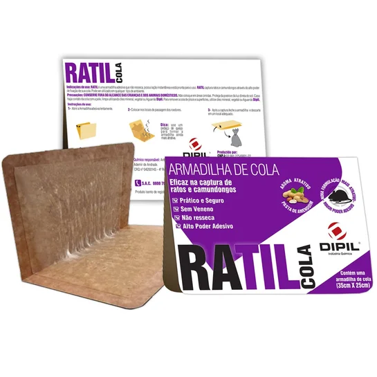 Ratil é uma armadilha adesiva que não resseca, possui ação instantânea e está pronta para o uso. Ratil captura ratos e camundongos através do alto poder de fixação de sua cola. Pode ser utilizado em qualquer tipo de ambiente. Produto sem veneno.